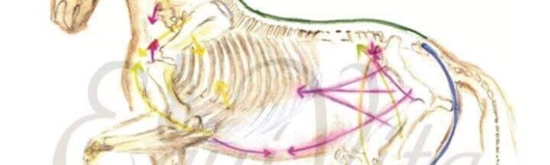 Daarom is het belangrijk dat we aan de uiteindes een contragewicht creëren. Want als dit contra-gewicht zijn werk doet, dan keert de werking van de lange rugspieren om; ze zullen in plaats van de rug hol trekken (zonder contragewicht) de rug optillen en daarmee de ruiter gaan dragen!